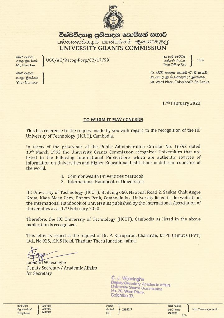 Awarded By -IIC University of Technology, Cambodia
